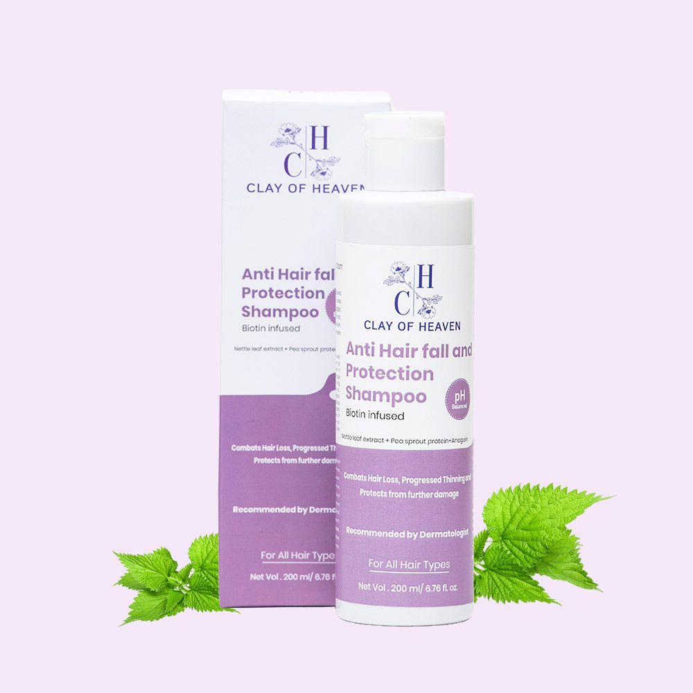 Hair loss can be a frustrating challenge, whether it’s caused by stress, genetics, or environmental factors. If you’re looking for a solution that not only reduces hair fall but also promotes new growth and strengthens your strands, Clay of Heaven’s Anti Hair Fall & Protection Shampoo is the answer. Formulated with powerful, clinically proven ingredients like Biotin, Nettle Leaf Extract, Pea Sprout Protein, and Anagain™, this shampoo goes beyond just cleansing—it actively works to restore your hair’s health and vitality from the roots.