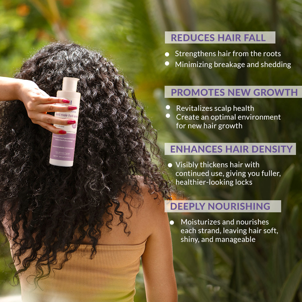 The Anti Hair Fall & Protection Shampoo is formulated to combat hair loss, strengthen hair, and promote new growth. With key ingredients like Biotin, Nettle Leaf Extract, Pea Sprout Protein, and Anagain™, it nourishes the scalp, strengthens hair follicles, and helps prevent hair breakage for healthier, fuller hair.