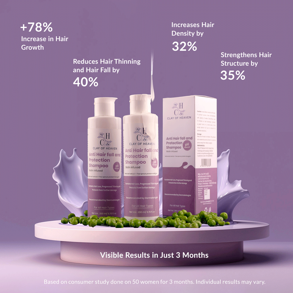 Hair loss can be a frustrating challenge, whether it’s caused by stress, genetics, or environmental factors. If you’re looking for a solution that not only reduces hair fall but also promotes new growth and strengthens your strands, Clay of Heaven’s Anti Hair Fall & Protection Shampoo is the answer. Formulated with powerful, clinically proven ingredients like Biotin, Nettle Leaf Extract, Pea Sprout Protein, and Anagain™, this shampoo goes beyond just cleansing—it actively works to restore your hair’s health and vitality from the roots.