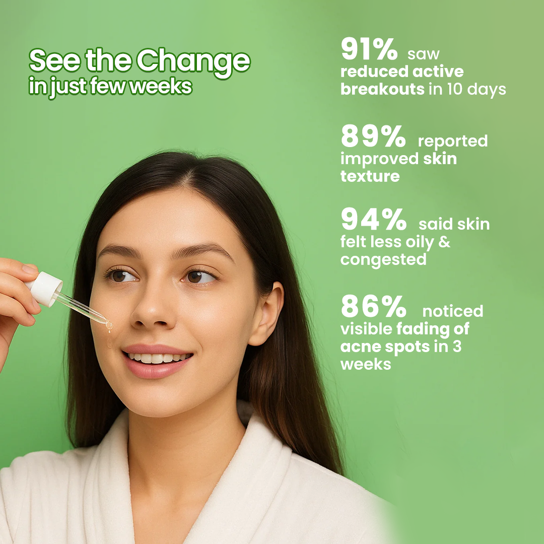 Powered by the perfect balance of nature and science, this serum is designed to restore your skin’s natural balance while delivering long-lasting results. Whether you’re battling blemishes, looking to even out your skin tone, or simply want to bring back that radiant, healthy glow—this serum works on all fronts. It calms, clears, smoothens, and brightens, making your skin look and feel its absolute best.
