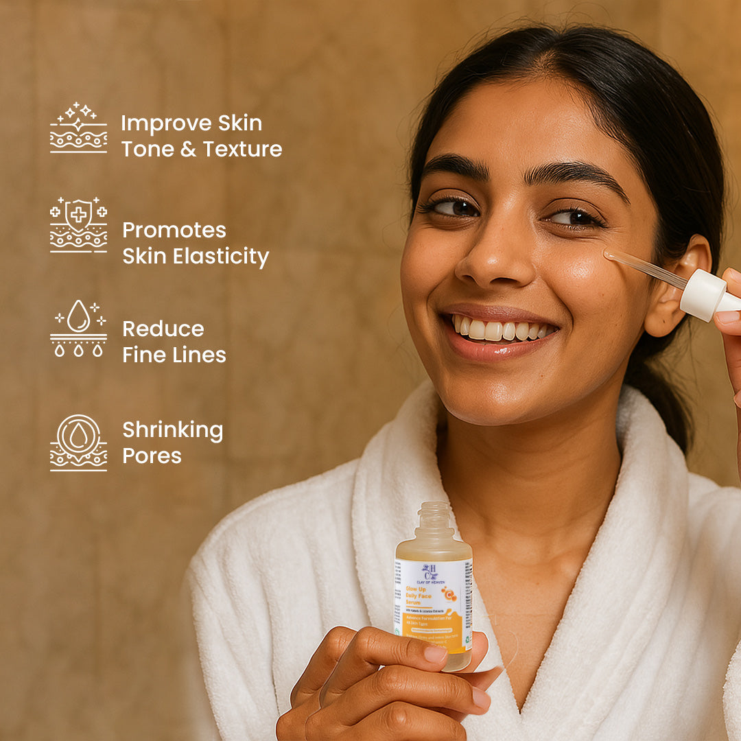 Absolutely! The Glow Up Serum is lightweight and non-comedogenic, making it safe for acne-prone skin. Its key ingredients, such as Vitamin C and Licorice Extract, help reduce inflammation, fade acne scars, and promote an even skin tone. However, if you have active acne or sensitive areas, start by using the serum a few times a week and gradually increase usage.