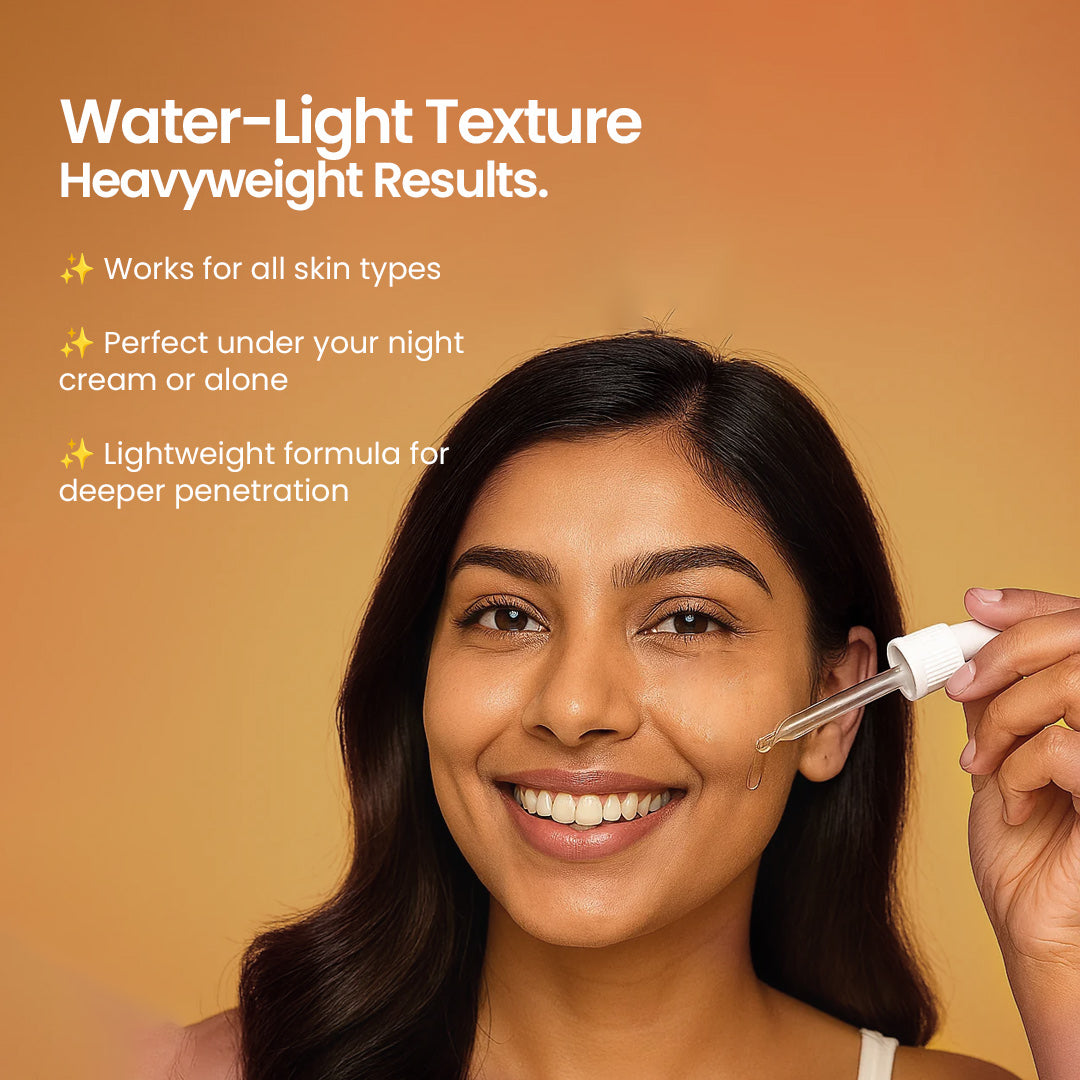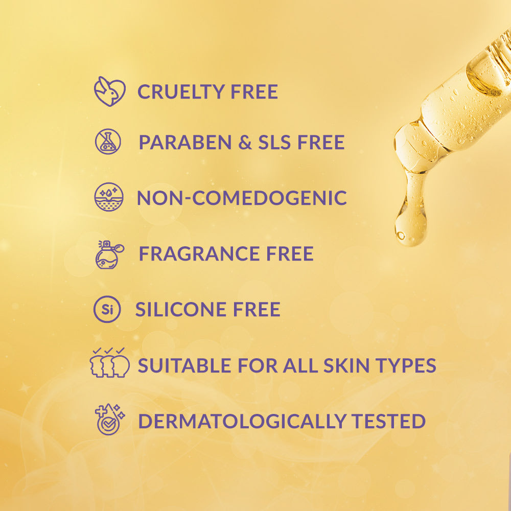 This serum is suitable for all skin types, including sensitive skin. It’s ideal for anyone looking to brighten their complexion, reduce the appearance of dark spots, and improve skin texture and elasticity.